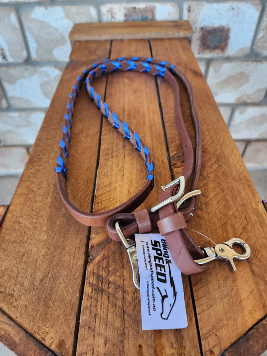 Regular price$98.00 AUDRegular priceSale price$98.00 AUD Save $-98.00 AUD (%)Unit priceperLaced Barrel Reins - Metallic Blue