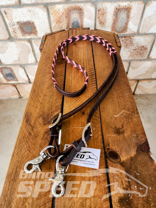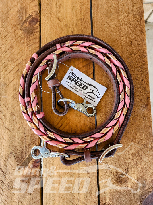 Regular price$98.00 AUDRegular priceSale price$98.00 AUD Save $-98.00 AUD (%)Unit priceperBling and Speed Pink & Rose Gold Laced Barrel Reins