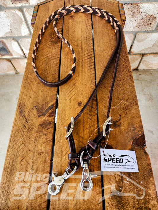 Regular price$98.00 AUDRegular priceSale price$98.00 AUD Save $-98.00 AUD (%)Unit priceperBling & Speed Rolled Leather Barrel Reins