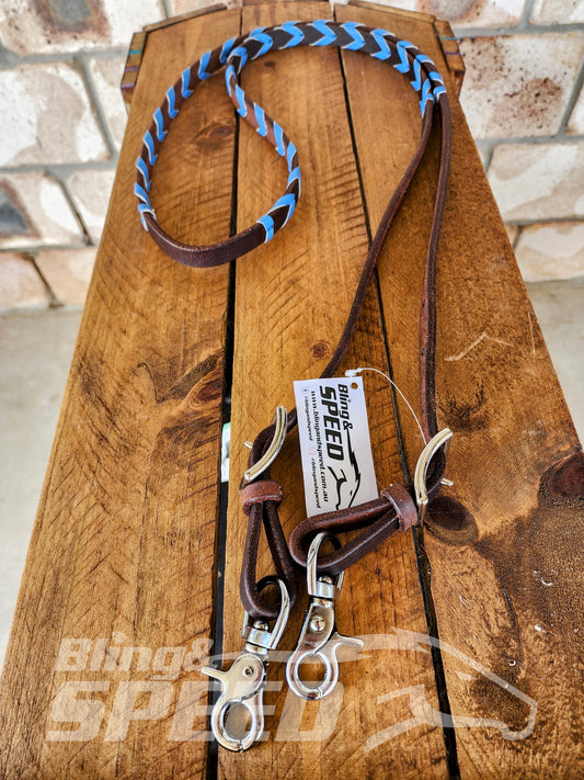 Regular price$98.00 AUDRegular priceSale price$98.00 AUD Save $-98.00 AUD (%)Unit priceperLaced Barrel Reins - Metallic Light Blue