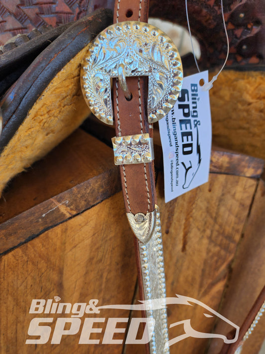 Regular price$155.00 AUDRegular priceSale price$155.00 AUD Save $-155.00 AUD (%)Unit priceperBling & Speed Silver One Ear Bridle #1