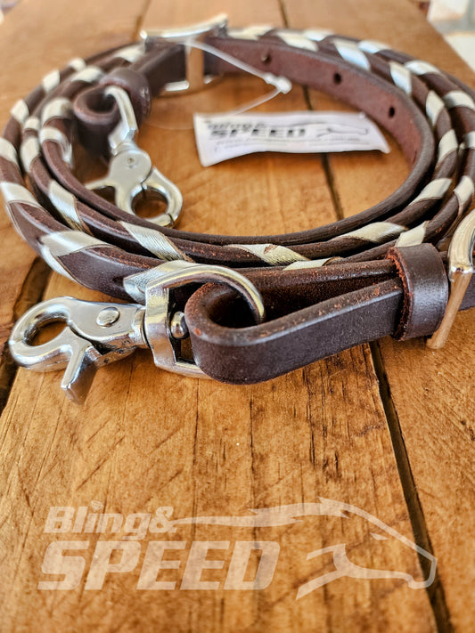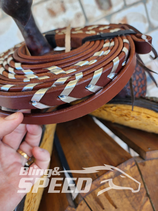 Regular price$110.00 AUDRegular priceSale price$110.00 AUD Save $-110.00 AUD (%)Unit priceperBling & Speed Silver Laced Split Reins