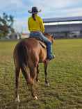 Say goodbye to accidental button mishaps and discomfort caused by traditional shirts. Our 'Game Changer' shirts are sewn from the third button down, ensuring a secure fit without any buttons popping or getting caught on your saddle's horn. Simply pull it on like a regular shirt and button up the top buttons effortlessly!